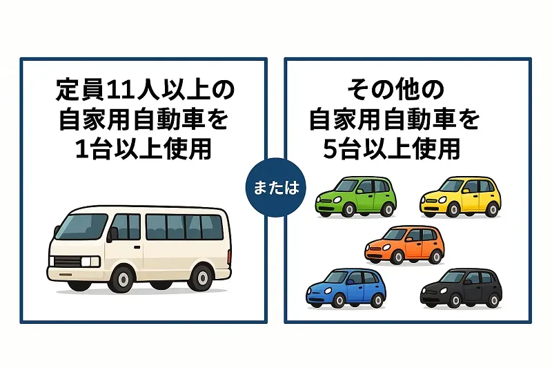 具体的には、道路交通法で定められた「安全運転管理者の選任義務」がある事業所が対象です。