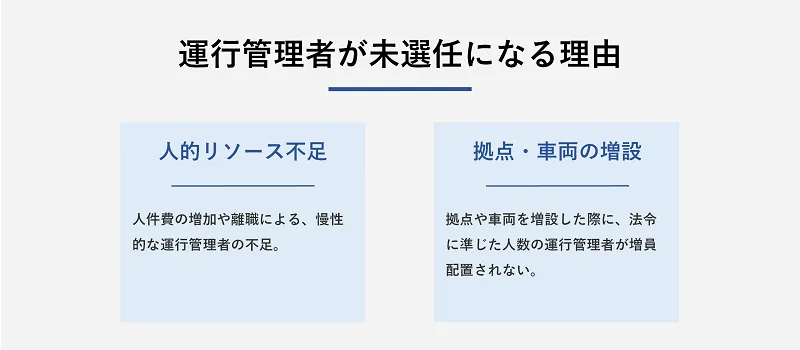 運行管理者の未選任は、どのような理由で発生するのでしょうか。