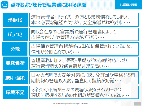 デジタル点呼マネージャーの概要、ご利用イメージなどについて纏めた資料です。