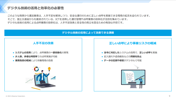 2024年以降の運送業界の課題や、運送事業者に求められる業務効率化と手法について解説しています。