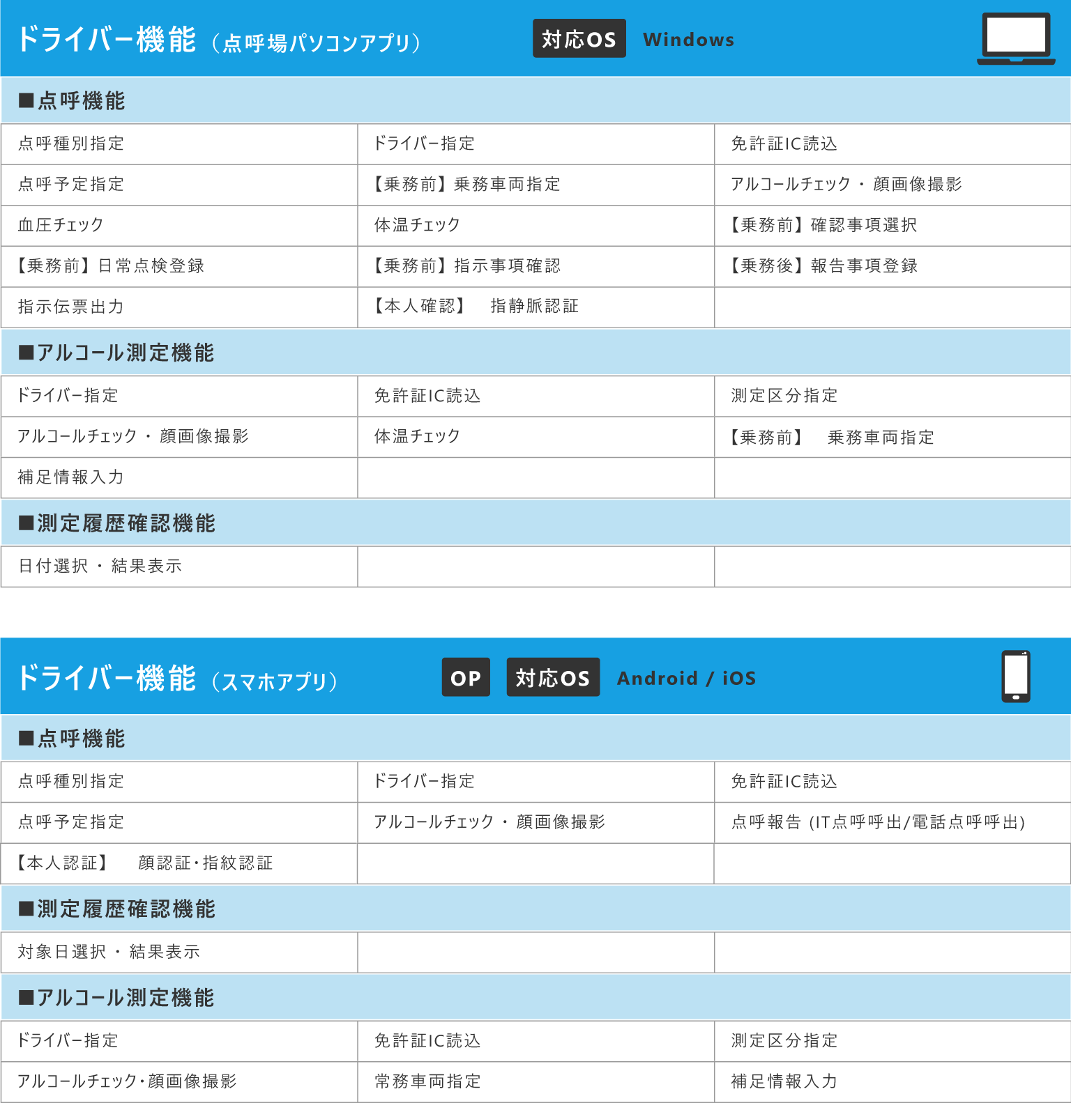 ※スマホ点呼オプション(980円/月・台)もございます。詳細はお問い合わせください。