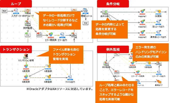 - 50種類を超えるアダプタで社内外のシステムと連携を実現
