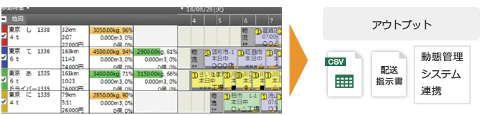 営業時間・車格制限・積降時間指定など、配車条件を細かく設定できます。注文情報をデータ形式にすれば入力の手間もミスも少なくなります。