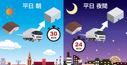 - 早朝/深夜と朝方/夕方時間帯の走行速度が考慮される。