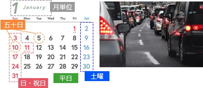 各道路区間の月別・曜日別・時間帯別の過去の渋滞情報・平均走行速度を元に、月別、曜日種別、1時間単位の走行速度データを保持する「VICS統計情報」を配車計算で参照することで、地域性や時間帯を考慮した実態に近い配車計画を策定します。