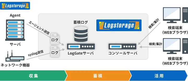 ログの受信と蓄積を行います。