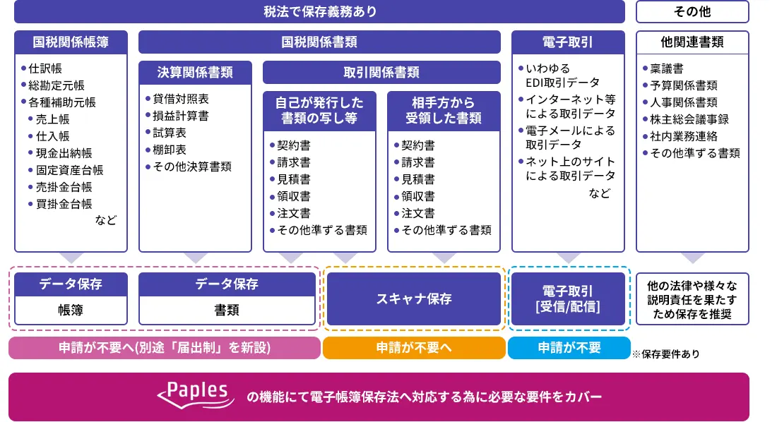 Paples単体で各申請区分(電子取引も含む)で要求されるシステム機能を提供可能