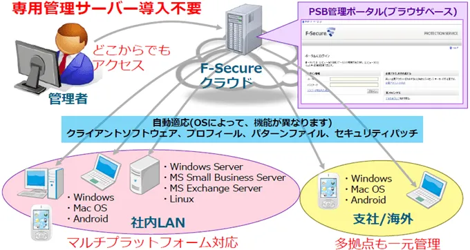 - 統合型セキュリティ対策、マルチプラットフォーム対応