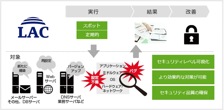 攻撃者の視点から様々な疑似攻撃を考察・試行し、安全性を徹底的に調査します。