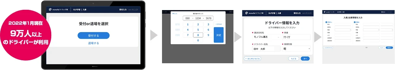 - 受付状況やバースの状況を誰でもどこからでも簡単に確認