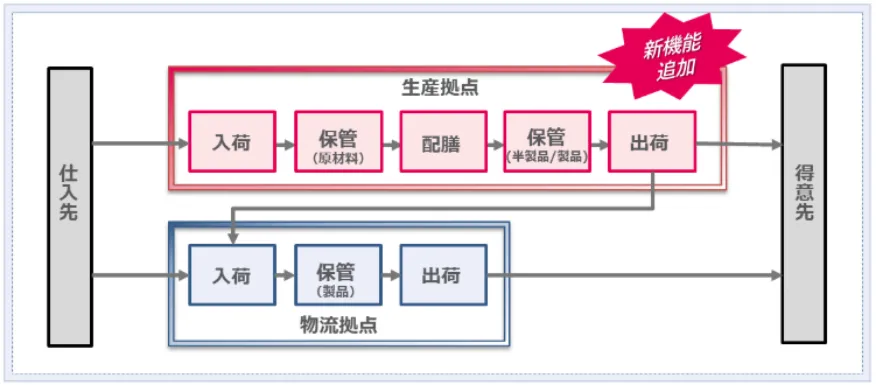 ロット管理階層を大幅に拡大(2項目→10項目)。得意先別の期限管理やロットトレースの強化、搬送機器の管理など在庫管理の柔軟性が向上。